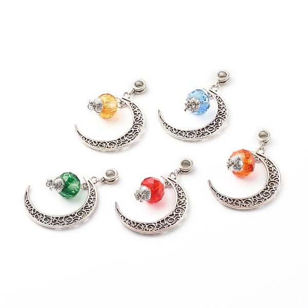 PandaHall Tibetan Style Alloy Pendants, with European Dangle Charms, Faceted Glass European Beads, Moon, Mixed Color, 53mm, Hole: 5mm... Price: $10.91 | PandaHall