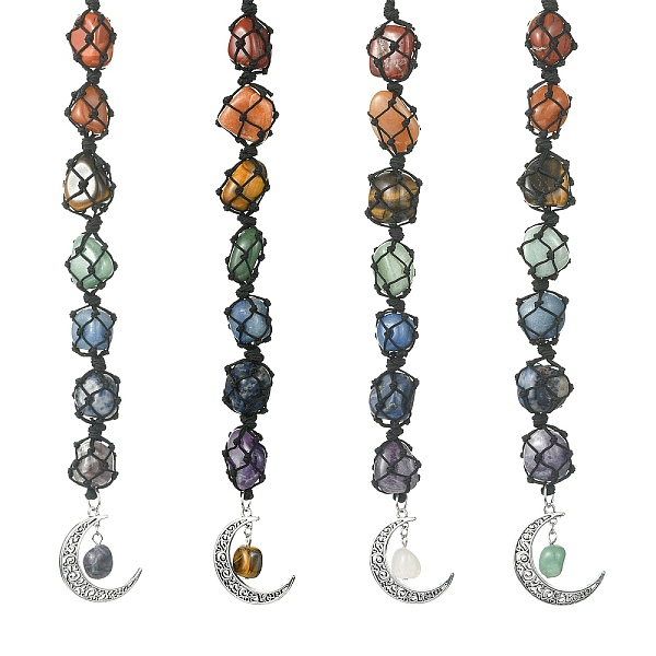 PandaHall 7 Chakra Gemstone Pouch Pendant Decorations, Tibetan Style Alloy Moon Charm and Nylon Thread Hanging Ornaments, 310~330mm Mixed... Price: $10.8 | PandaHall