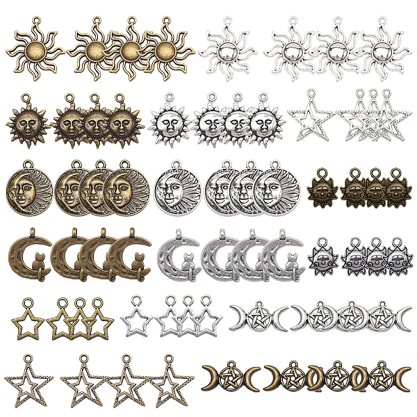 PandaHall SUNNYCLUE Tibetan Style Alloy Pendants, Sun & Moon & Star, Mixed Color, 72pcs/set Alloy Mixed Shapes Price: $7.49 | PandaHall