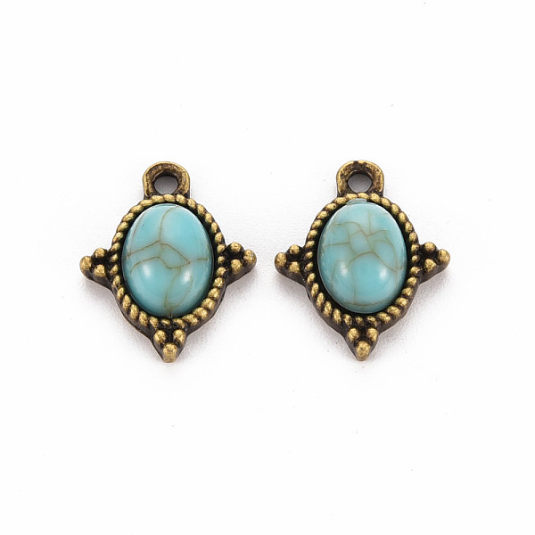 PandaHall Tibetan Style Alloy Charms, with Synthetic Turquoise, Cadmium Free & Lead Free, Oval, Antique Bronze, 15x12x5mm, Hole: 1.5mm Alloy... Price: $13.05 | PandaHall