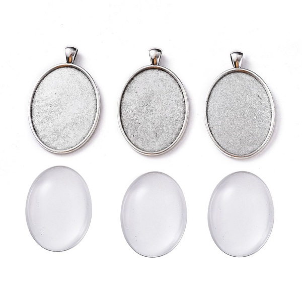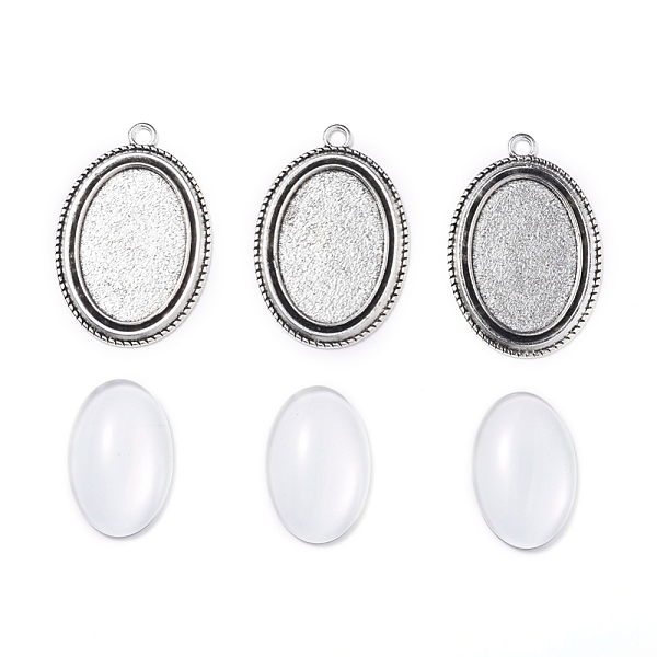 PandaHall DIY Pendant Making, Tibetan Style Alloy Pendant Cabochon Settings and Oval Transparent Clear Glass Cabochons, Antique Silver, Oval... Price: $2.87 | PandaHall