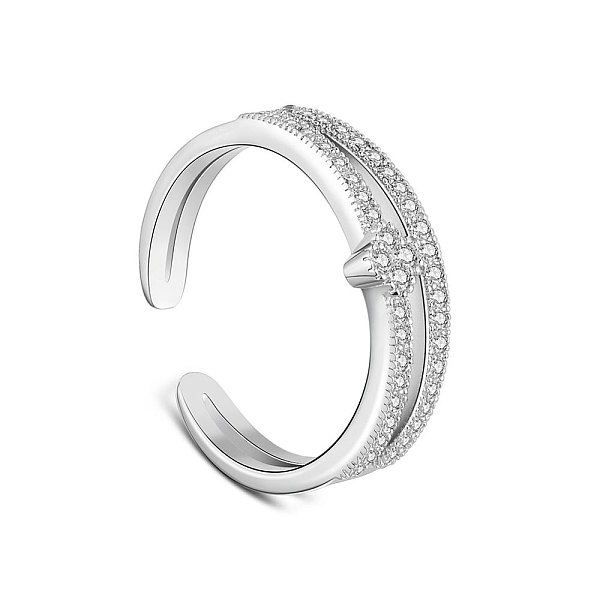 PandaHall TINYSAND Rhodium Plated 925 Sterling Silver Cuff Rings, Open Rings, with Star and Cubic Zirconia, Platinum, US Size 6(16.5mm)... Price: $0 | PandaHall