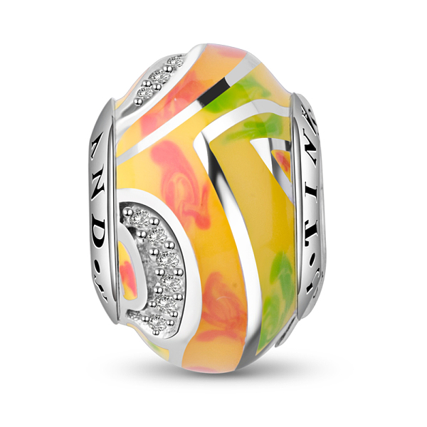 PandaHall TINYSAND Rhodium Plated 925 Sterling Silver Amazing Landscape Enamel Charm European Bead, with Cubic Zirconia, Yellow Green... Price: $0 | PandaHall