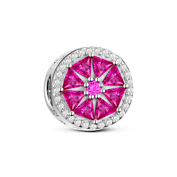 PandaHall TINYSAND Rhodium Plated 925 Sterling Silver Elegant Blooming Flower European Beads, with Cubic Zirconia, Platinum, Deep Pink... Price: $0 | PandaHall