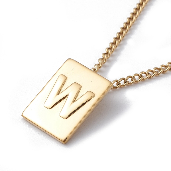 PandaHall Titanium Steel Initial Letter Rectangle Pendant Necklace for Men Women, Golden, Letter. W, 18.11~18.5 inch(46~47cm) Titanium Steel... Price: $6.36 | PandaHall