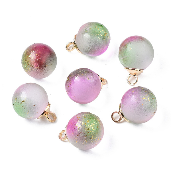 PandaHall Two Tone Transparent Spray Painted Glass Pendants, with Light Gold Plated Brass Loop, Frosted, with Glitter Powder, Round, Pink... Price: $13.64 | PandaHall