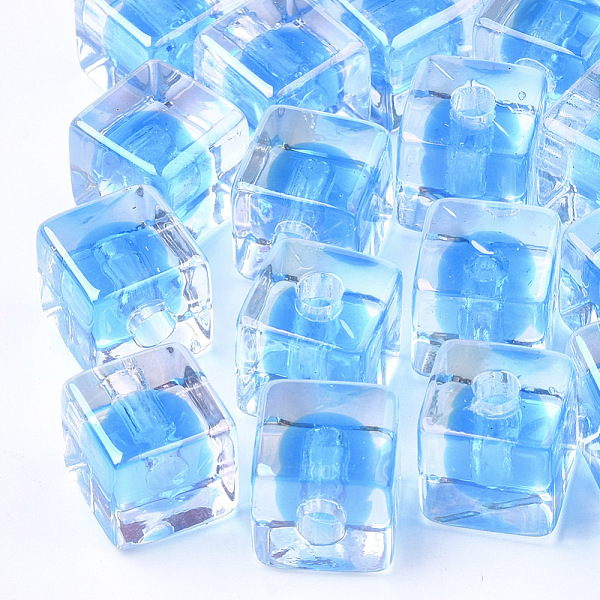 PandaHall Transparent Acrylic Beads, UV Plating & Rainbow, Bead in Bead, Half Drilled Beads, Cube, Deep Sky Blue, 12.5x12.5x12.5mm, Half... Price: $15.91 | PandaHall