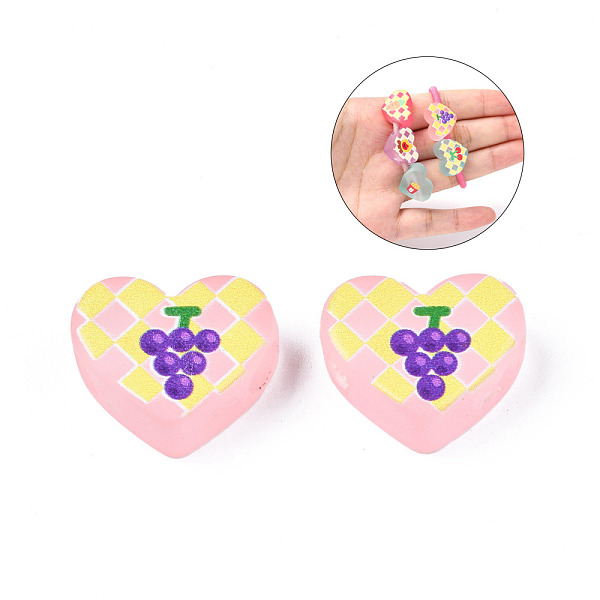 PandaHall Autumn Theme Transparent Printed Acrylic Beads, for Hair Rope DIY, Large Hole Beads, Rubberized Style, Heart with Grape Pattern... Price: $24.75 | PandaHall