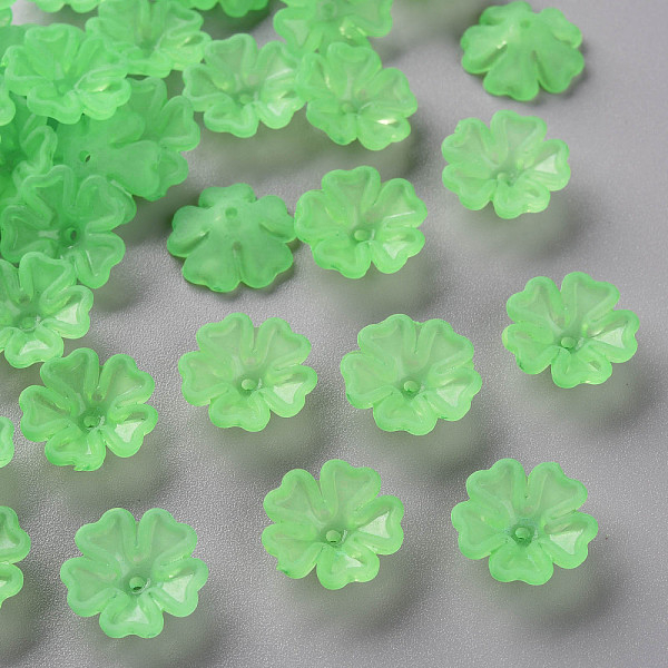 PandaHall Transparent Frosted Acrylic Bead Caps, 5-Petal, Flower, Light Green, 16.5x6mm, Hole: 1.6mm, about 959pcs/500g Acrylic Price: $6.13 | PandaHall