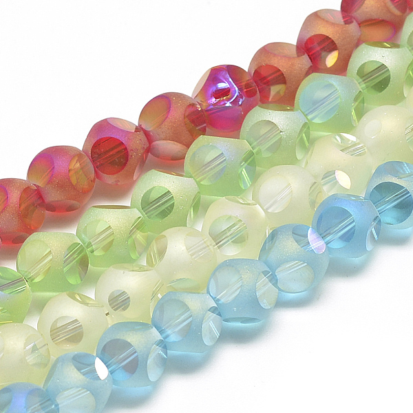 PandaHall Plated Transparent Glass Beads Strands, Frosted, Faceted Round, Mixed Color, 8x7mm, Hole: 1.5mm, about 72pcs/strand, 20.4 inch... Price: $6.85 | PandaHall