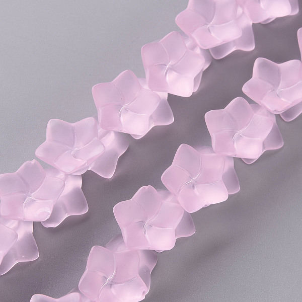 PandaHall Transparent Frosted Glass Beads Strands, Flower, Pink, 13.5x13x9mm, Hole: 1mm, about 50pcs/strand, 12.60 inch~13.39 inch... Price: $3.94 | PandaHall