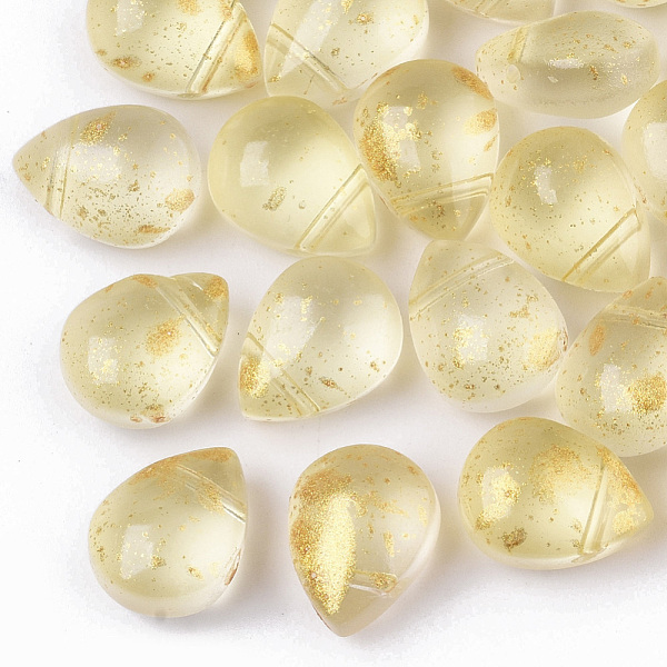 PandaHall Transparent Spray Painted Glass Beads, Top Drilled Beads, with Glitter Powder, Frosted, Teardrop, Champagne Yellow, 12.5x9.5x7mm... Price: $10.27 | PandaHall