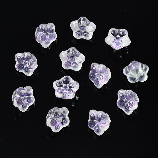 PandaHall Transparent Spray Painted Glass Beads, with Glitter Powder, Flower, Medium Purple, 10x10x7mm, Hole: 1.2mm Glass Flower Price: $7.72 | PandaHall