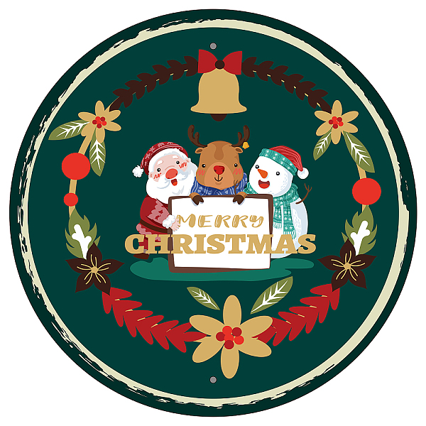 PandaHall Vintage Metal Tin Sign, Iron Wall Decor for Bars, Restaurants, Cafes Pubs, Flat Round, Colorful, Christmas Themed Pattern... Price: $10.9 | PandaHall