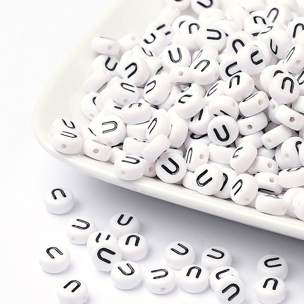 PandaHall Yilisi 500Pcs Acrylic Horizontal Hole Letter Beads, Flat Round, Letter. U, 7x4mm, Hole: 1mm, 500pcs Acrylic Letter U White Price: $1.8 | PandaHall