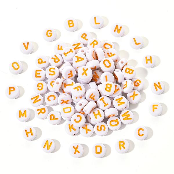 PandaHall Opaque Acrylic Beads, White, Flat Round with Alphabet, Letter A~Z, Colorful, 7mm Acrylic Flat Round Price: $0.78 | PandaHall