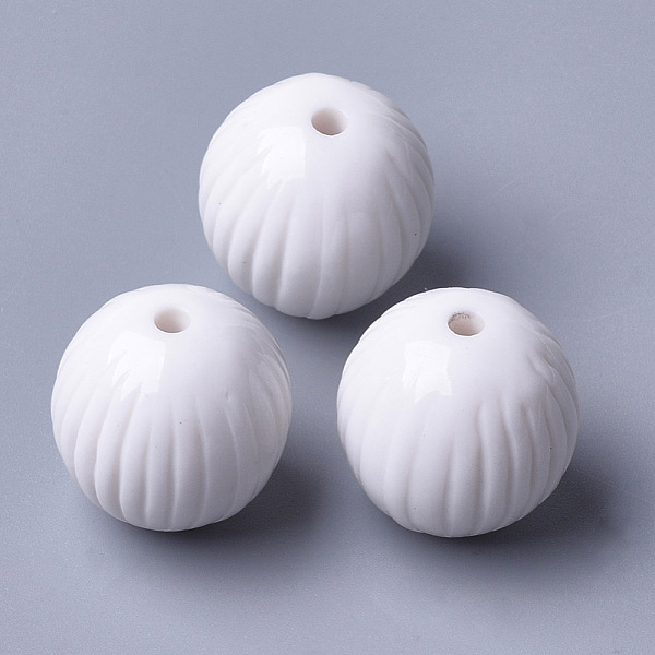 PandaHall Opaque Acrylic Beads, AB Color, Round with Stripe Pattern, White, 16x14.5mm, Hole: 3mm Acrylic Round White Price: $39.78 | PandaHall