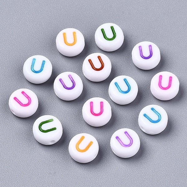 PandaHall Opaque White Acrylic Beads, Flat Round with Mixed Color Letter, Letter. U, 7x3.5mm, Hole: 1.2mm, about 4000pcs/500g Acrylic Letter... Price: $11.05 | PandaHall