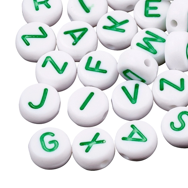 PandaHall White Craft Acrylic Beads, Flat Round with Green Mixed Letter, Letter, 7x3.5mm, Hole: 1.2mm, about 1480pcs/200g Acrylic Letter A~Z Price: $8.58 | PandaHall