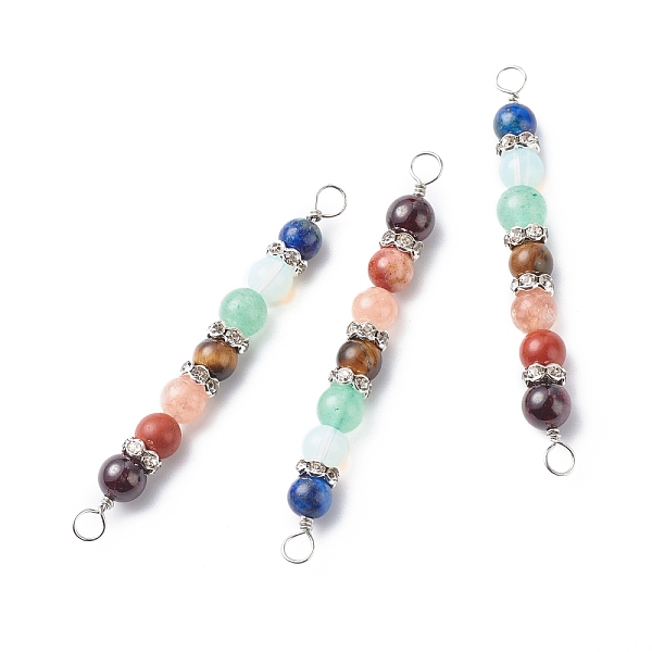 PandaHall 7 Chakra Mixed Gemstone Copper Wire Wrapped Connector Charms, Gems Crystal Rhinestone Round Link, Silver, 61.5x6.5mm, Hole: 3.5mm... Price: $11.74 | PandaHall