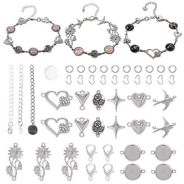 PandaHall DIY Bracelet Making Finding Kit, Including Glass Cabochons, Alloy Clasps, Brass Chains Extender, Star & Heart & Flower Stainless... Price: $8.39 | PandaHall