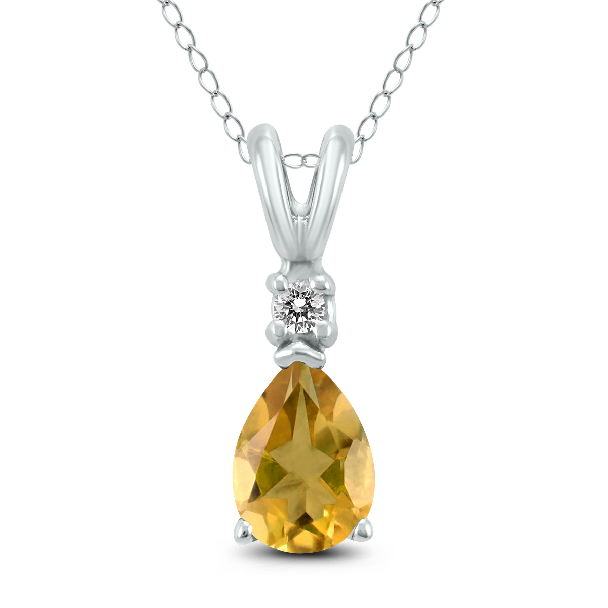 14K White Gold 8x6MM Pear Citrine and Diamond Pendant