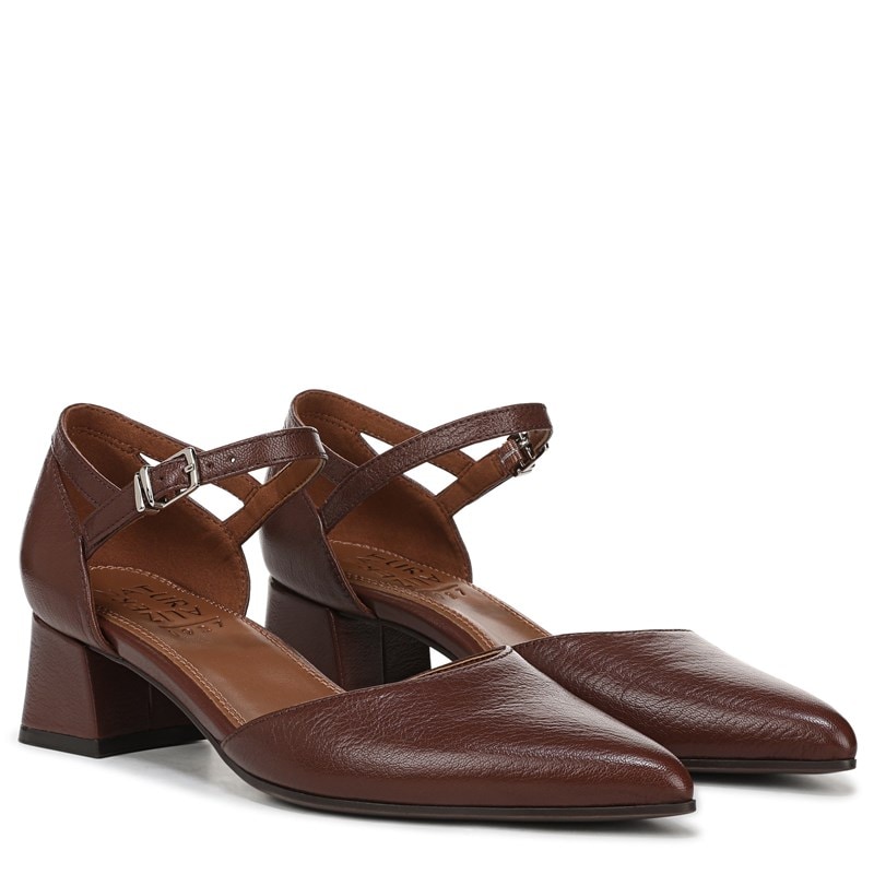 Naturalizer Maddox Strappy Pump Shoes, Cappuccino Brown Leather, 11.0W Pointed Toe, Block Heels Price: $148 | Famous Footwear