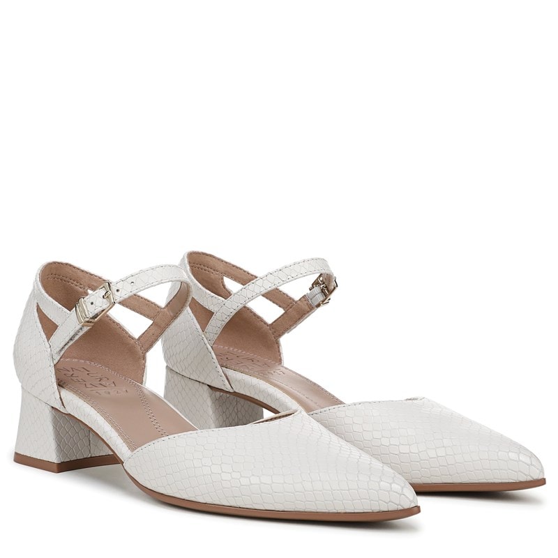 Naturalizer Maddox Strappy Pump Shoes, White Snake Print Faux Leather, 8.0W Pointed Toe, Block Heels Price: $148 | Famous Footwear