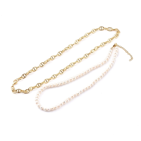 PandaHall Brass Mariner Link Chain Necklaces & Natural Pearl Beaded Necklaces Sets, with 304 Stainless Steel Lobster Claw Clasps, Seashell... Price: $42.79 | PandaHall
