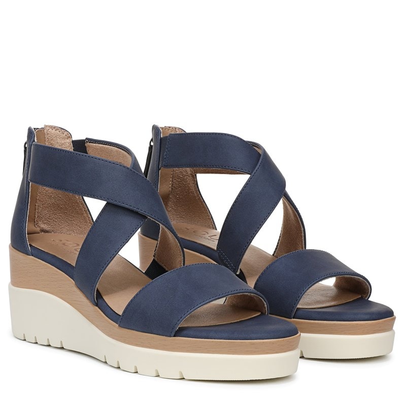 Soul Goodtimes Wedge Sandals, Dark Blue Faux Leather Fabric, 6.0M Open Toe, Zip Closure Price: $120 Sale Price: $99.99