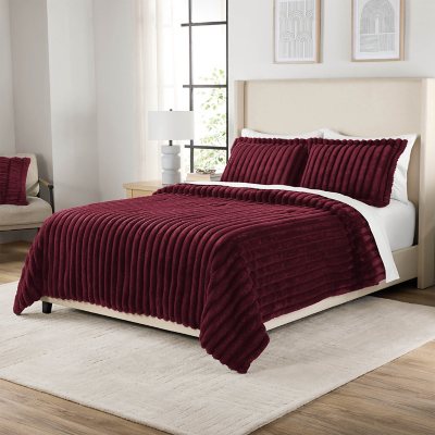 Member's Mark 3-Piece Printed Plush Comforter Sets (Assorted Sizes and Styles):- Wine, Full/Queen