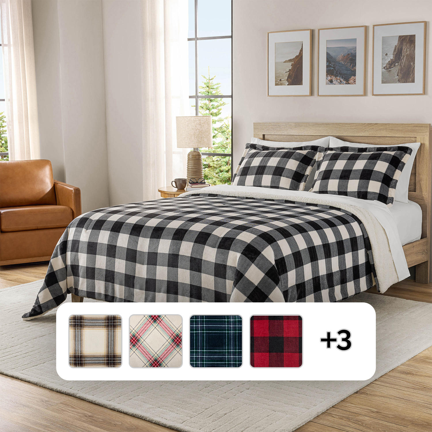 Member's Mark 3-Piece Printed Plush Comforter Sets (Assorted Sizes and Styles):- Black/White, King Price: $49.98 | Simply Wholesale