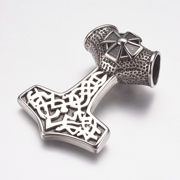 PandaHall 304 Stainless Steel Big Pendants, Thor's Hammer with Cross, Antique Silver, 39x54x20mm, Hole: 11mm 304 Stainless Steel Tool Price: $12.4 | PandaHall