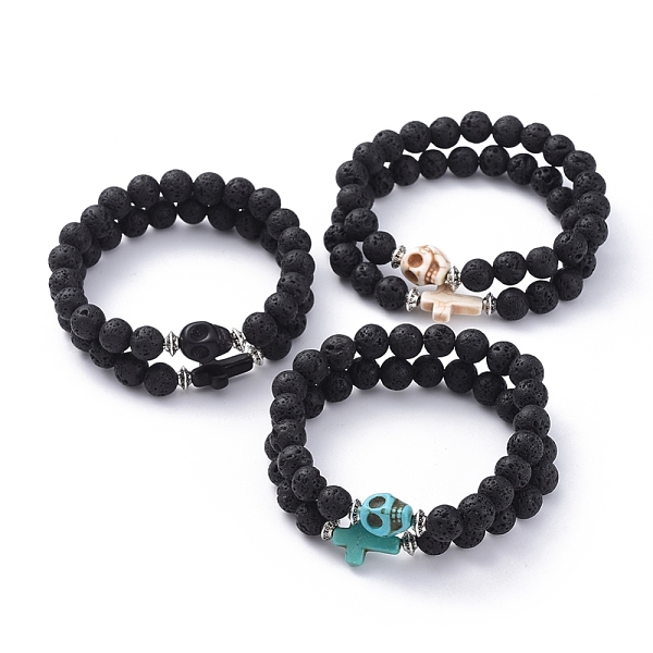 PandaHall Natural Lava Rock Beaded Stretch Bracelets, with Tibetan Style Bead Spacers and Cross Synthetical Howlite Beads, 53mm Lava Rock... Price: $9.38 | PandaHall