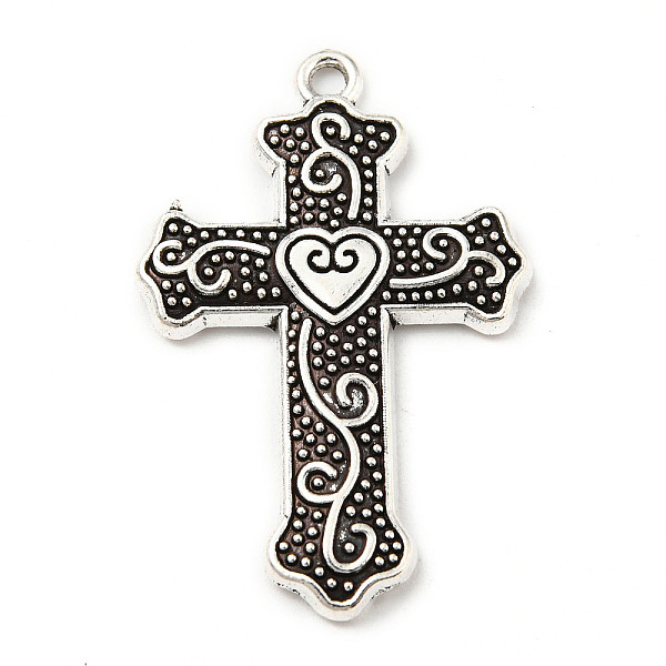 PandaHall Tibetan Style Alloy Pendants, Cadmium Free & Lead Free, Cross with Heart, Antique Silver, 19x10.5x2mm, Hole: 1.6mm, about... Price: $18.6 | PandaHall