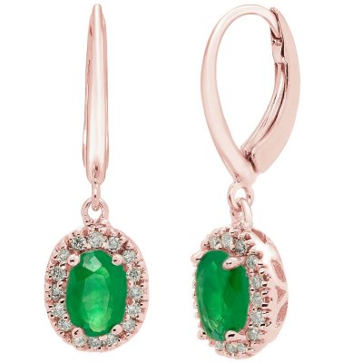 Oval Cut Gemstone & Diamond Halo Stud Earrings in 14K Gold:- Emerald, Rose Gold Price: $499 | Sam's Club