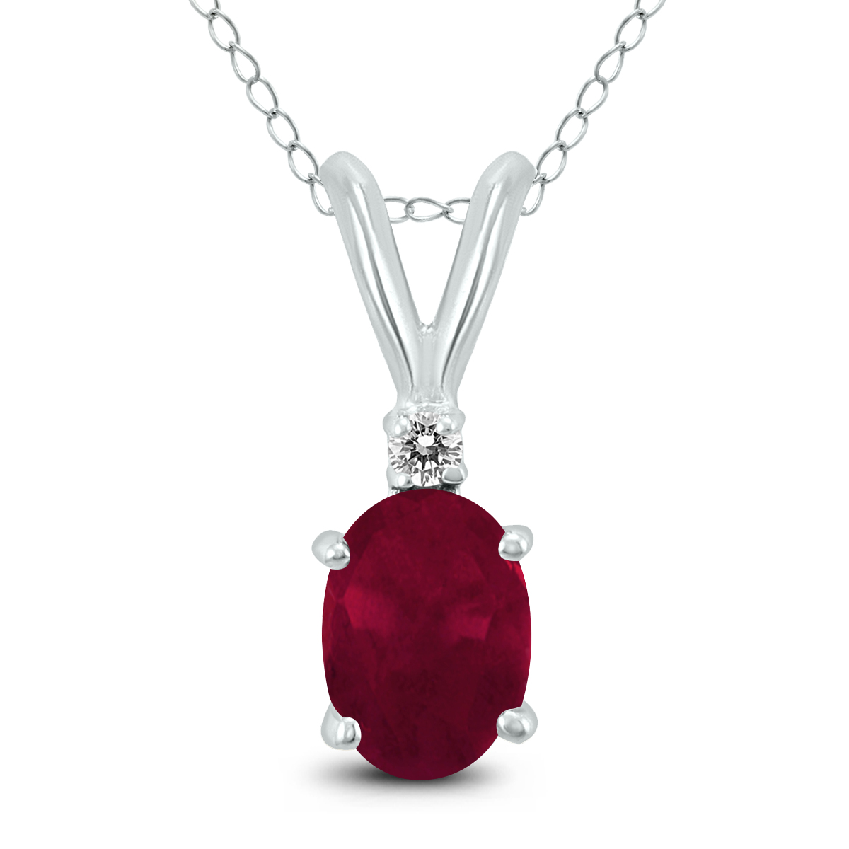 14K White Gold 5x3MM Oval Ruby and Diamond Pendant Price: $519 | Szul.com