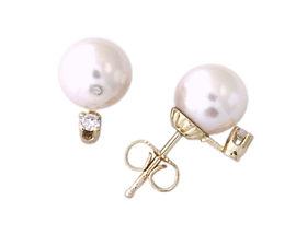 6 - 6.5mm Cultured Round Pearl and.10ct Diamond Stud Earrings 14K Yellow Gold Price: $199 |