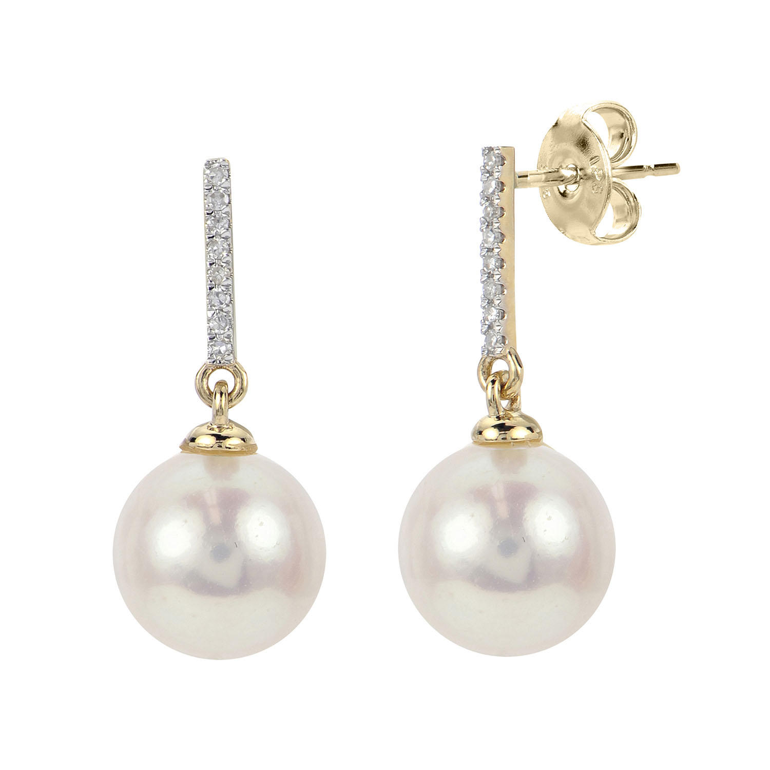 8-9mm Cultured Freshwater Pearl and Diamond (0.05 cttw) Drop Earrings in 14K Gold- White Freshwater Pearl, Yellow Gold:- Price: $329 | Szul.com