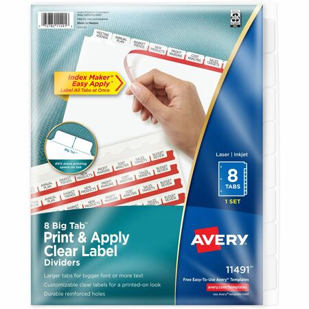 Wholesale Dividers & Tabs: Discounts on Avery Index Maker Big Tab Print & Apply Clear Label Dividers with White Tabs AVE11493