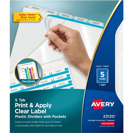 Wholesale Dividers & Tabs: Discounts on Avery Index Maker Print & Apply Clear Label Plastic Dividers with Pocket AVE23120