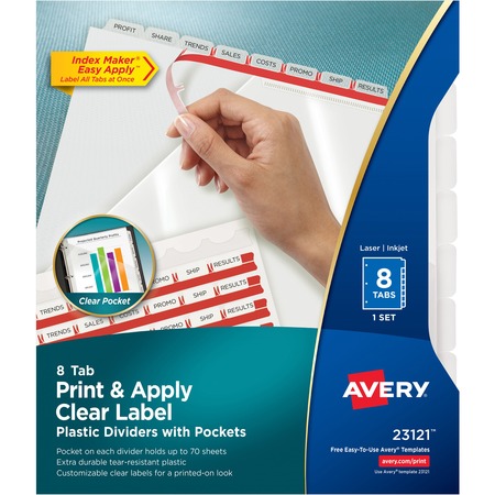 Wholesale Dividers & Tabs: Discounts on Avery Index Maker Print & Apply Clear Label Plastic Dividers with Pocket AVE23121