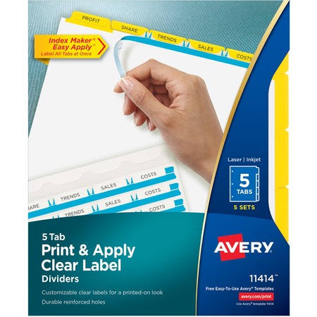 Wholesale Dividers & Tabs: Discounts on Avery Index Maker Print & Apply Clear Label Dividers with White Tabs AVE11416