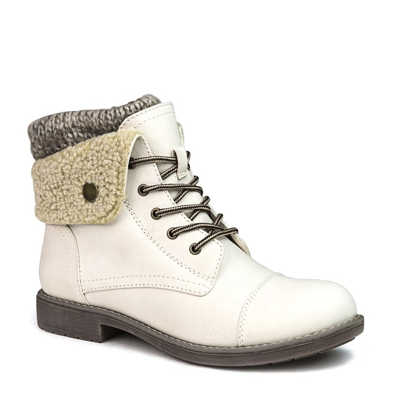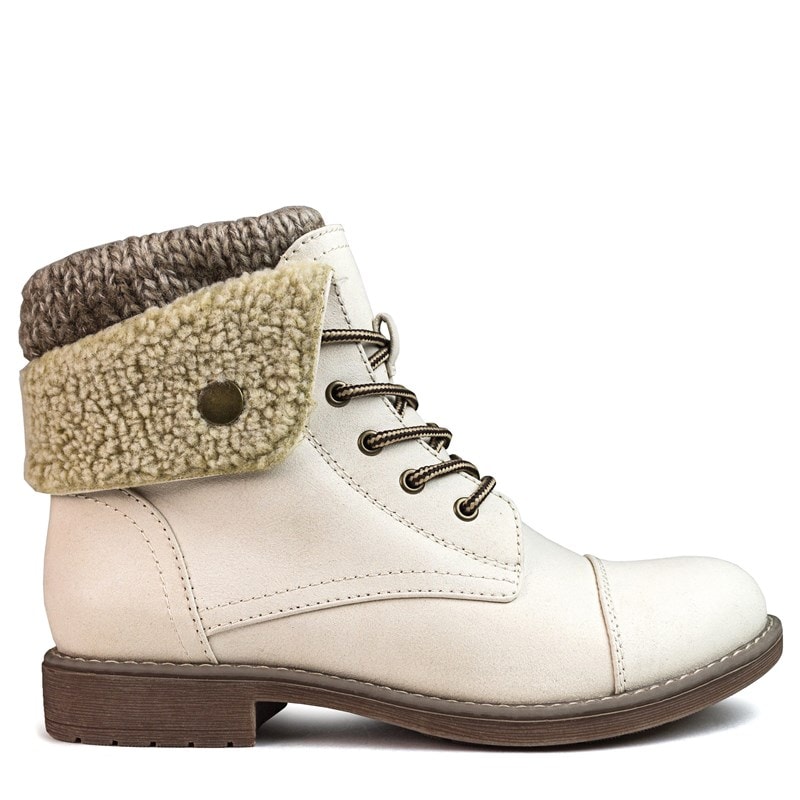 Cliffs by White Mountain Women's Duena Wide Combat Boots (Winter White Fabric) - Size 7.5 W
