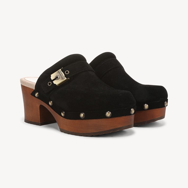 Dr. Scholl's Orig Collection Women's Original Joy Platform Clog Shoes Black Suede Leather DRORG 6.0 M