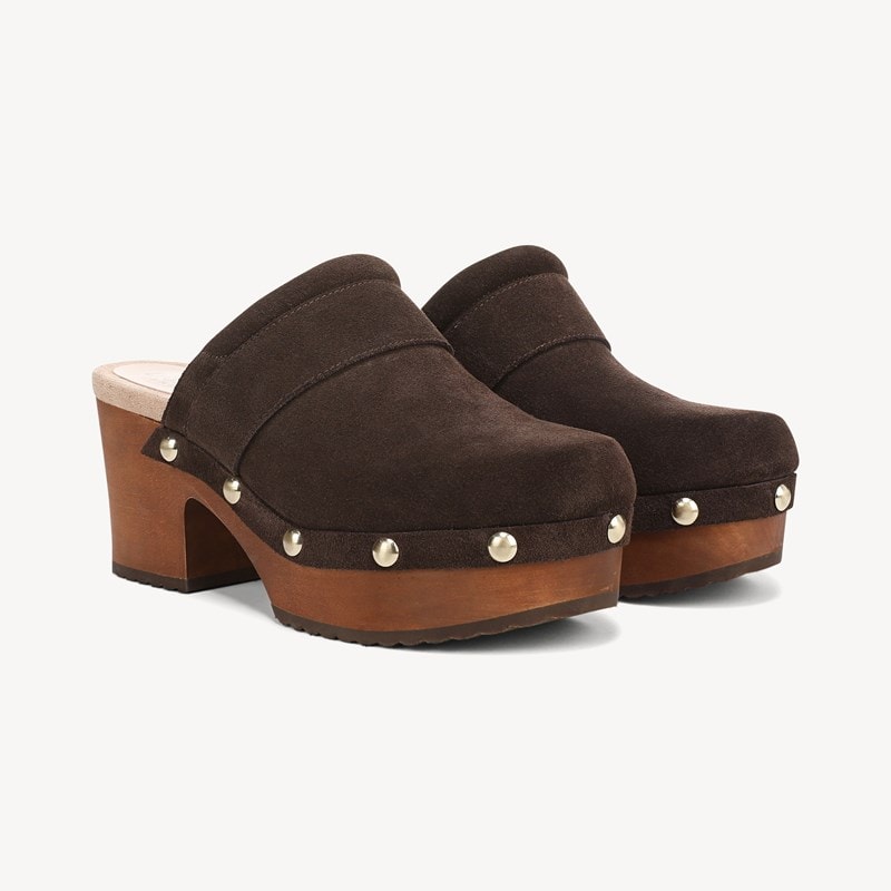 Dr. Scholl's Orig Collection Women's Original Joy Platform Clog Shoes Dark Brown Suede Leather DRORG 8.5 M