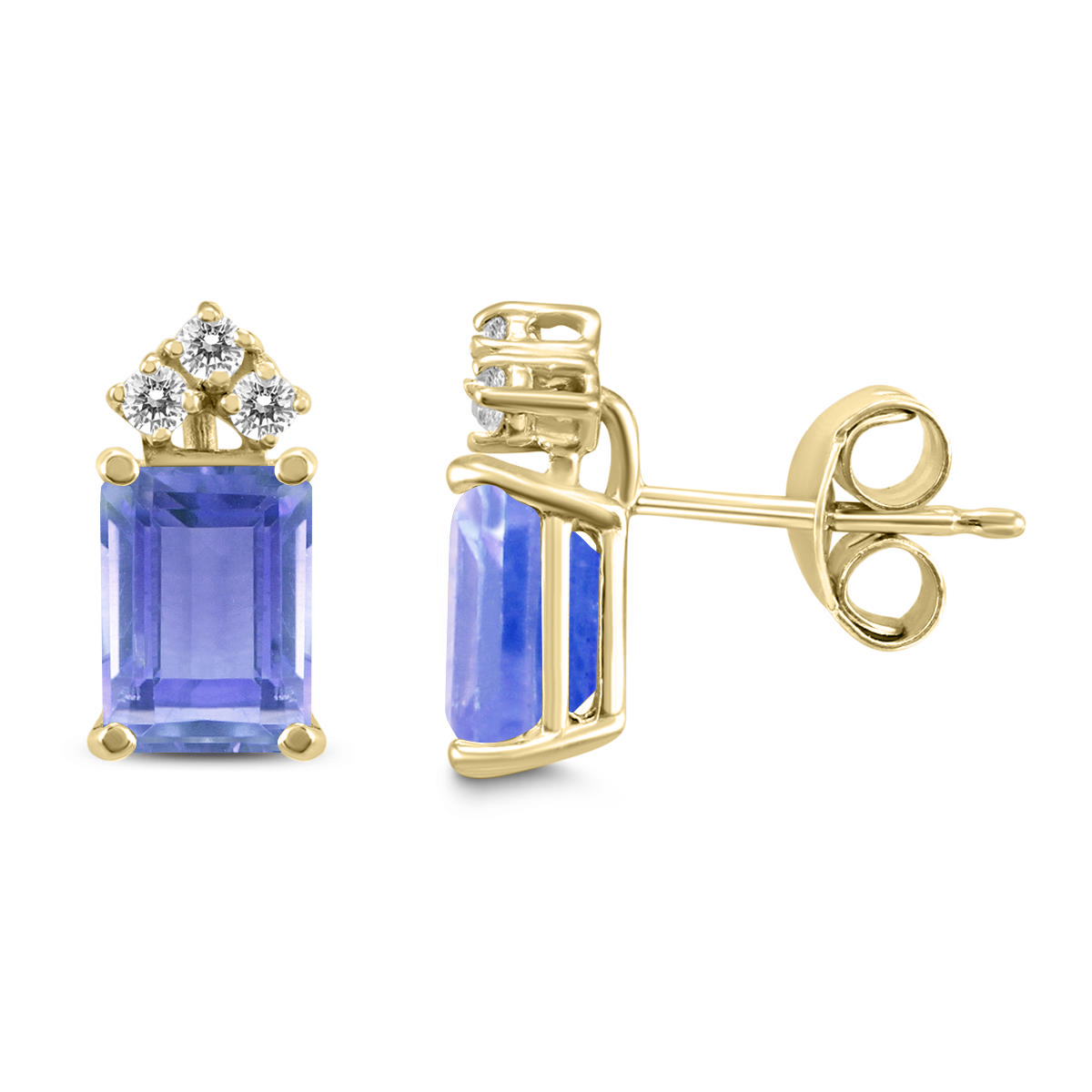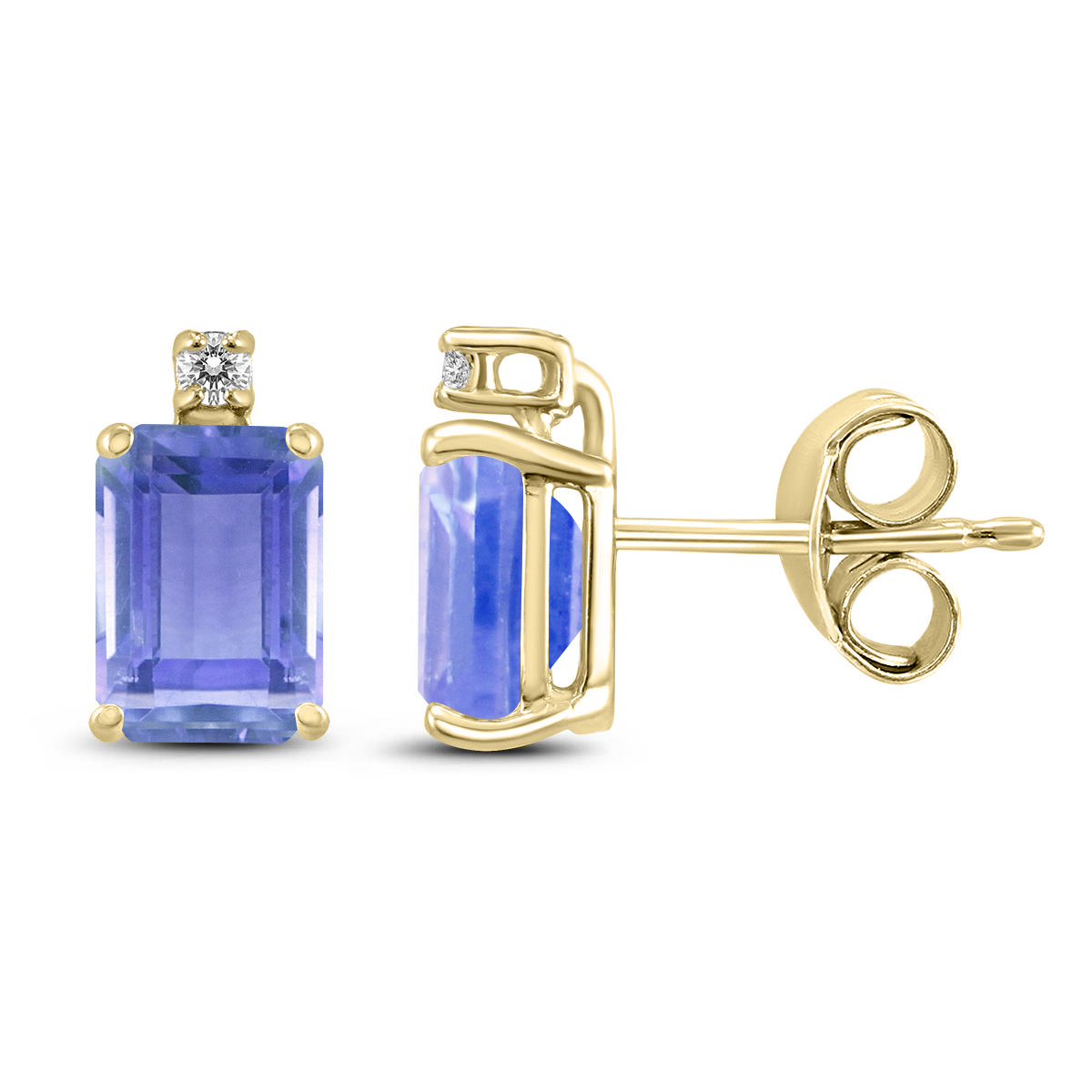 14K Yellow Gold 5x3MM Emerald Shaped Tanzanite and Diamond Earrings Price: $0 | Szul.com