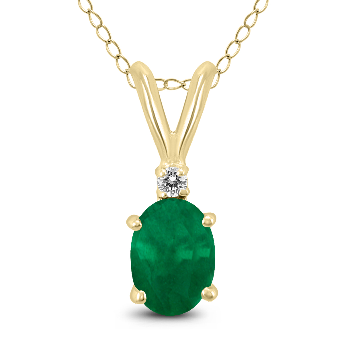 14K Yellow Gold 5x3MM Oval Emerald Pendant Price: $479 | Szul.com